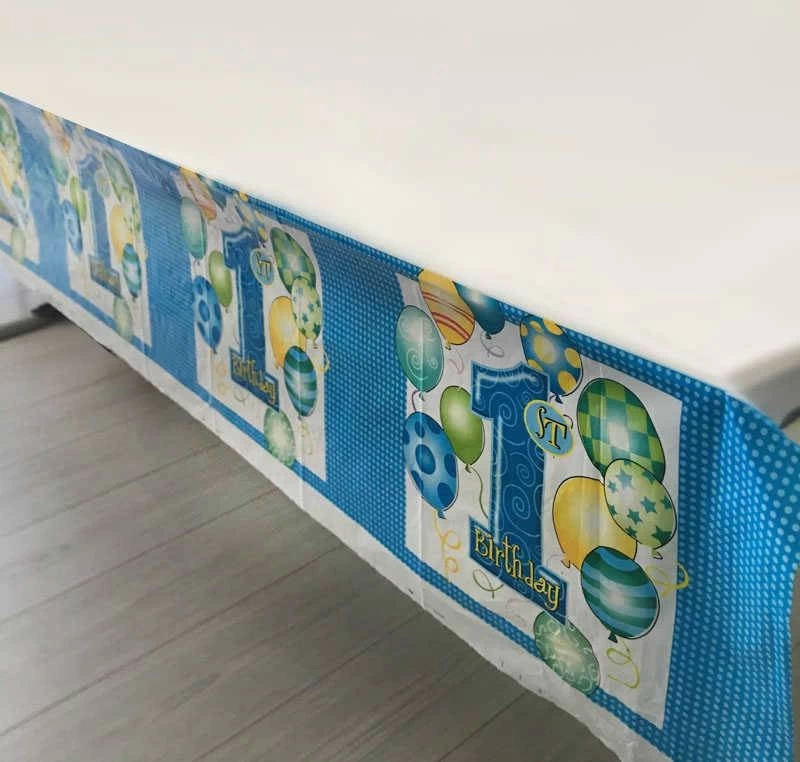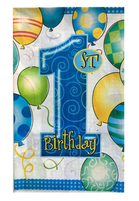 1 Yaş Mavi Doğum Günü Partisi Plastik Masa Örtüsünü;