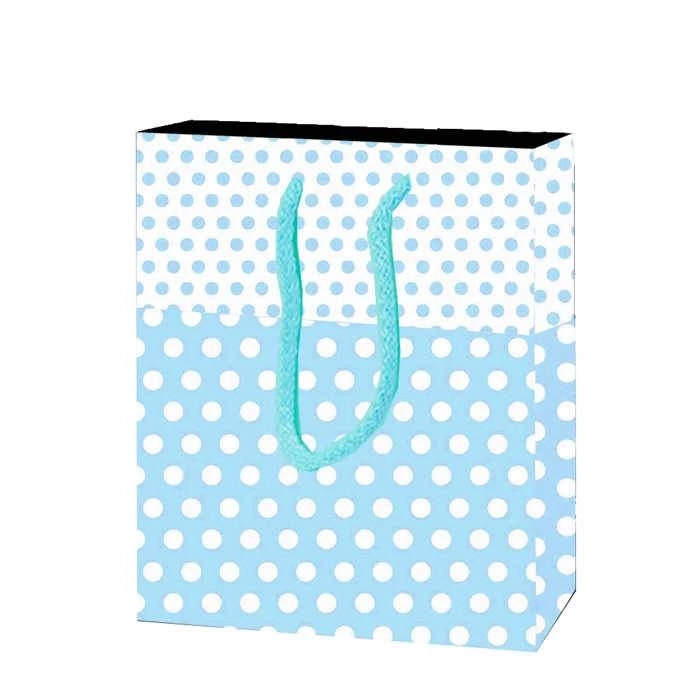 11x17 cm Puantiyeli Mavi Renk Tutma İpli 25 li Karton Çanta