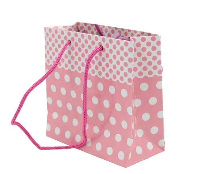 11x17 cm Puantiyeli Pembe Renk Tutma İpli 25 li Karton Çanta