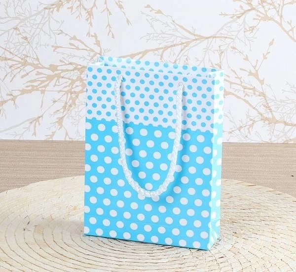 14x17 cm Puantiyeli Mavi Renk Tutma İpli 25 li Karton Çanta