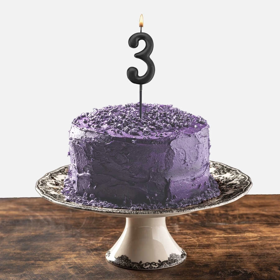 3 rakam siyah çubuk mum özel tasarımı ile pasta süslemelerine hareket katabilirsiniz.