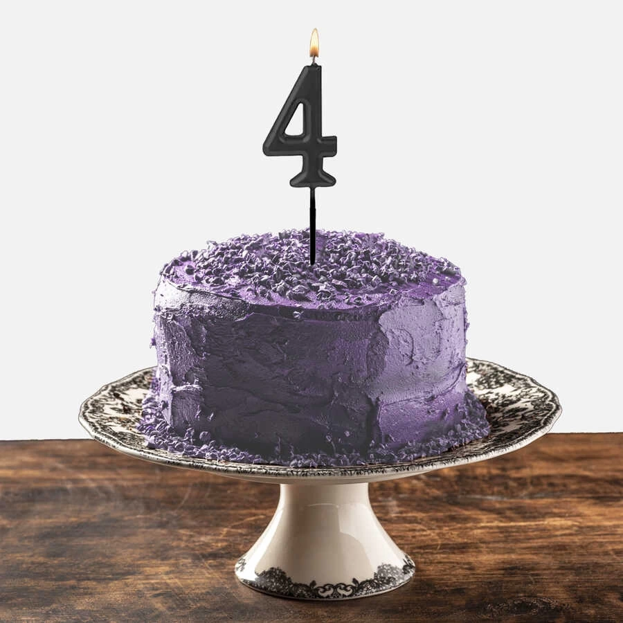 4 rakam siyah çubuk mum özel tasarımı ile pasta süslemelerine hareket katabilirsiniz.