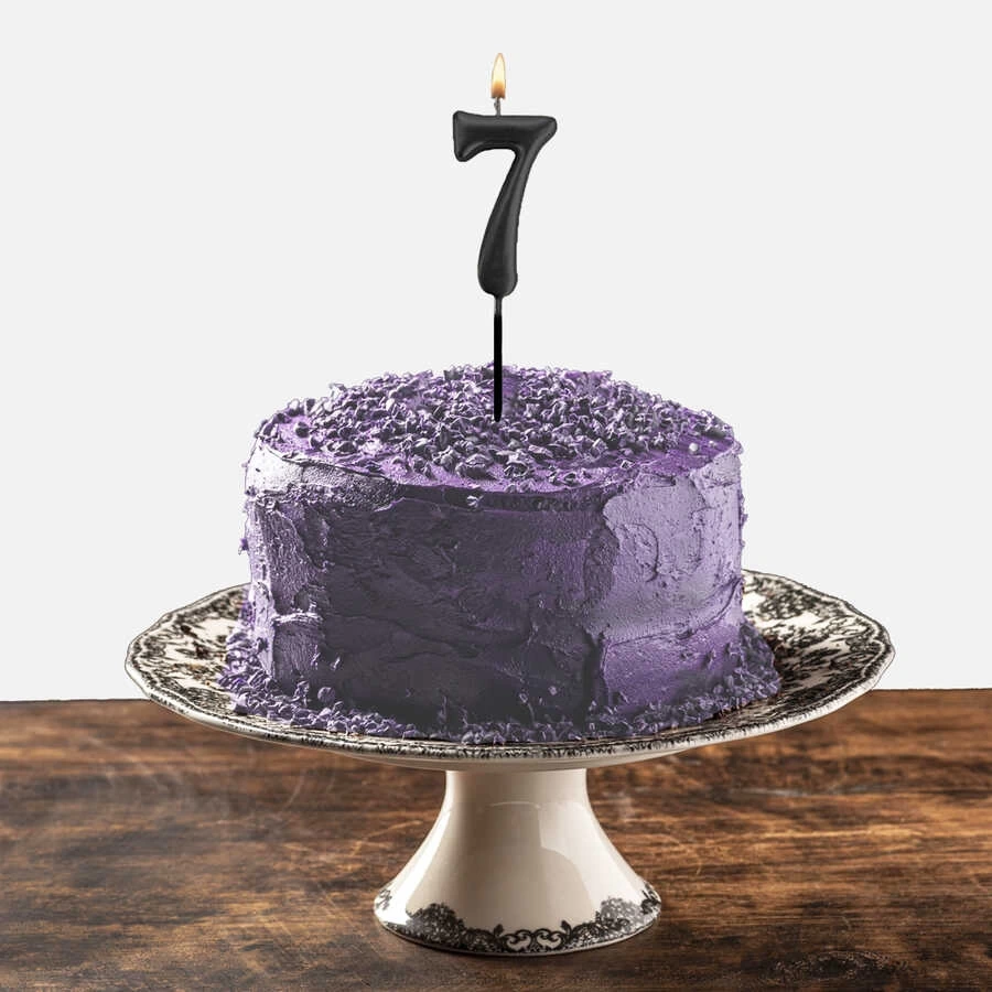 7 rakam siyah çubuk mum özel tasarımı ile pasta süslemelerine hareket katabilirsiniz.
