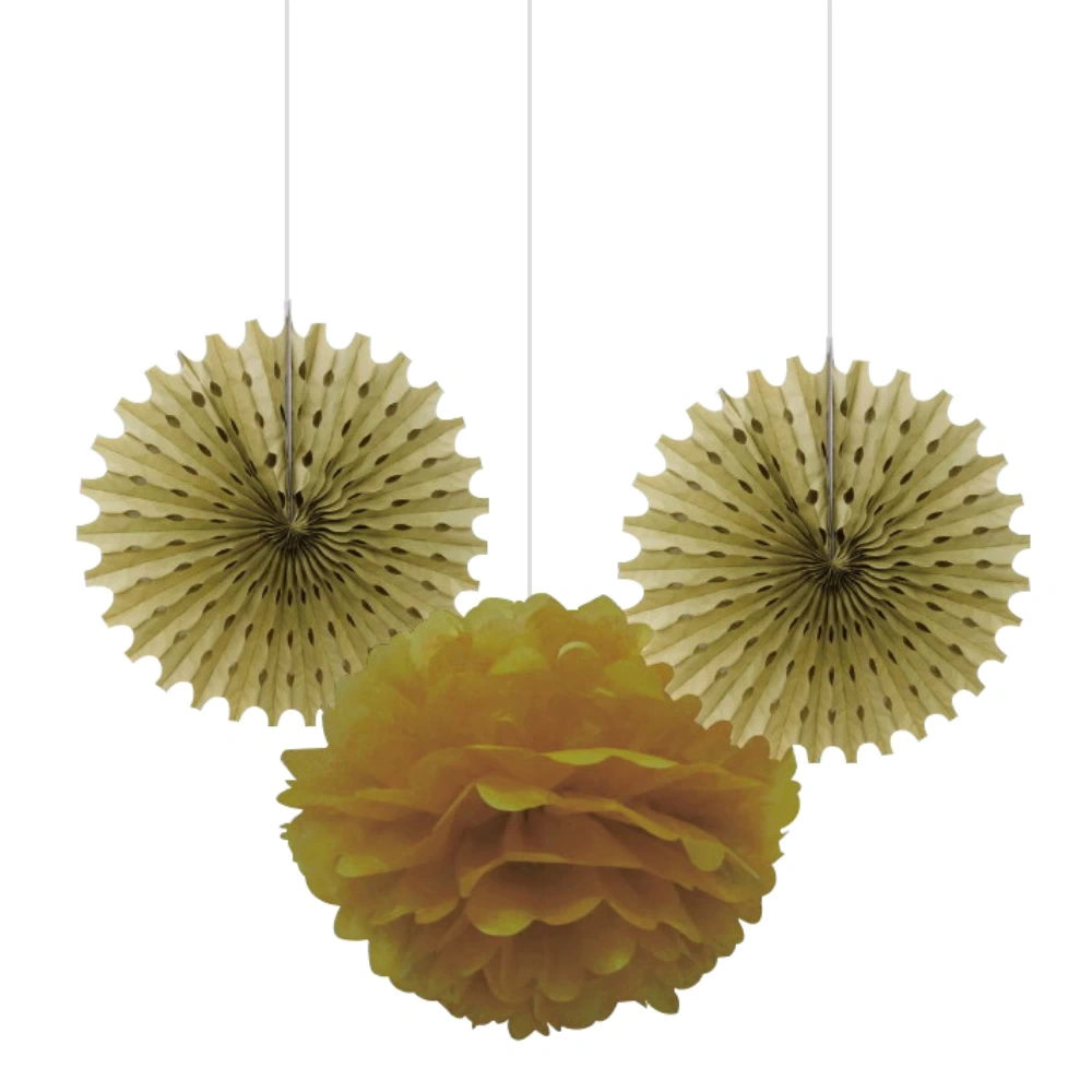Altın ponpon / yelpaze kağıt süs seti kağıt malzemeden üretilmektedir. Düğün, nişan, doğum günü ve diğer tüm özel partiler