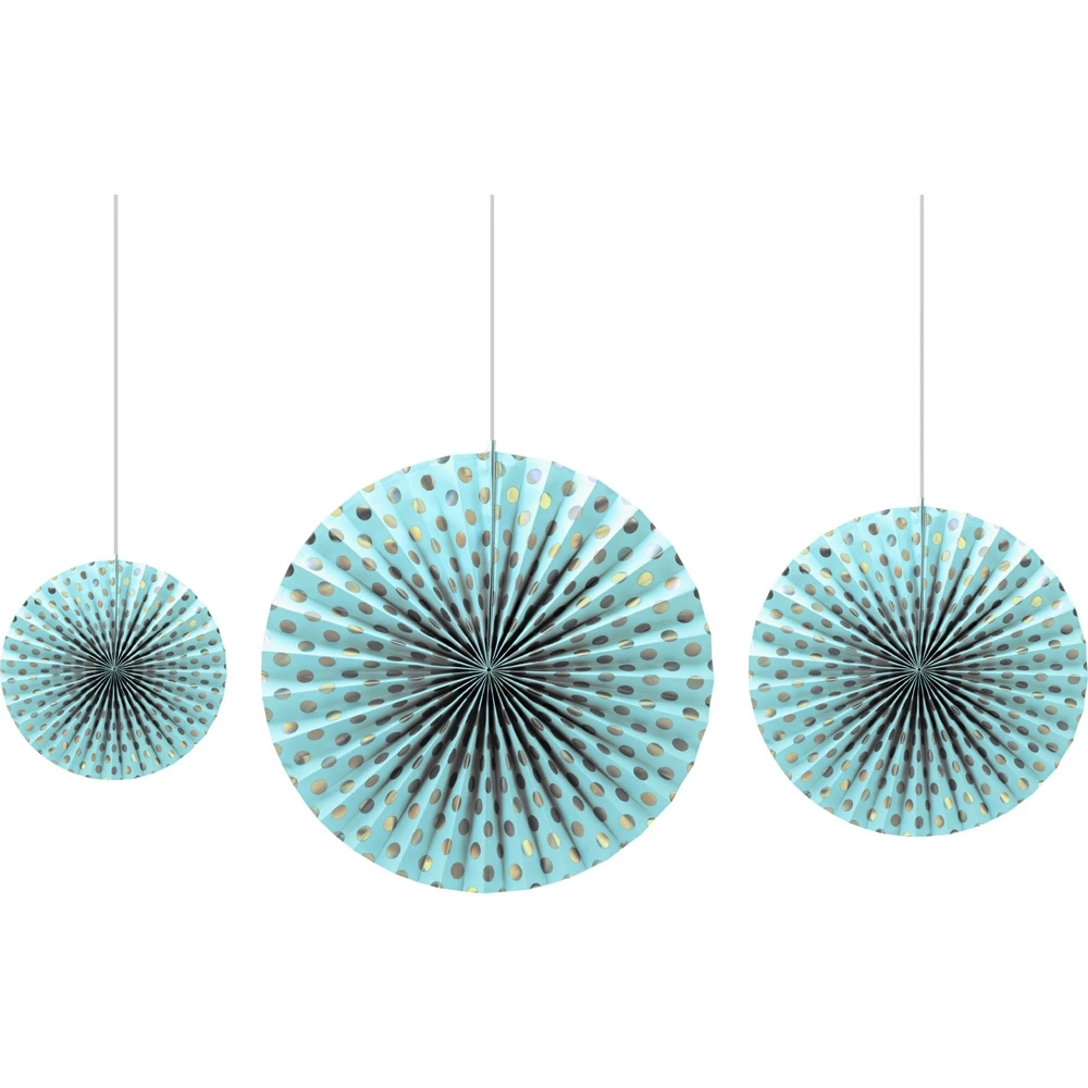 Altın varaklı mavi yelpaze süs seti kağıt malzemeden üretilmektedir. Düğün, nişan, doğum günü ve diğer tüm özel partiler için tercih edebilirsiniz.