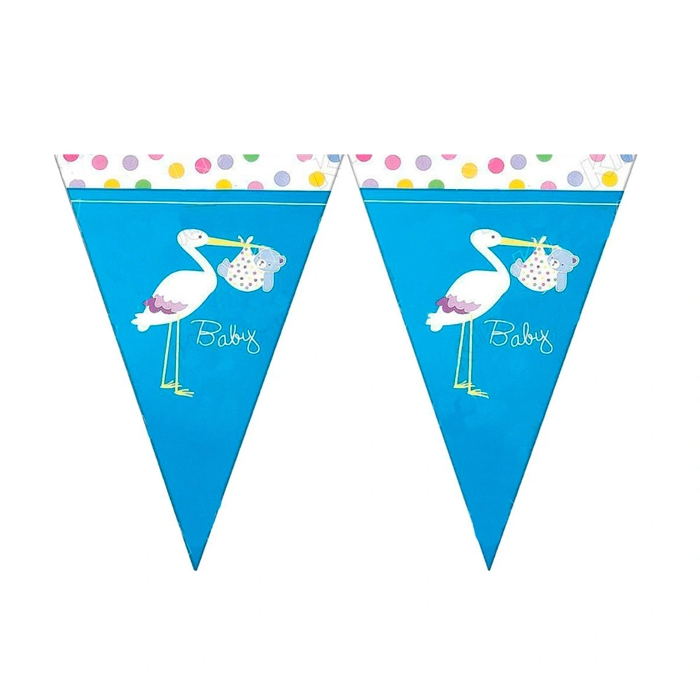 Baby Shower Mavi Leylek Üçgen Flama FLM014