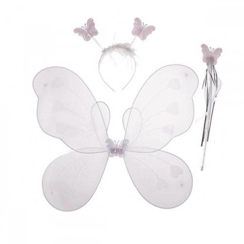 Beyaz Kelebek Kanadı Asa ve Taç Set