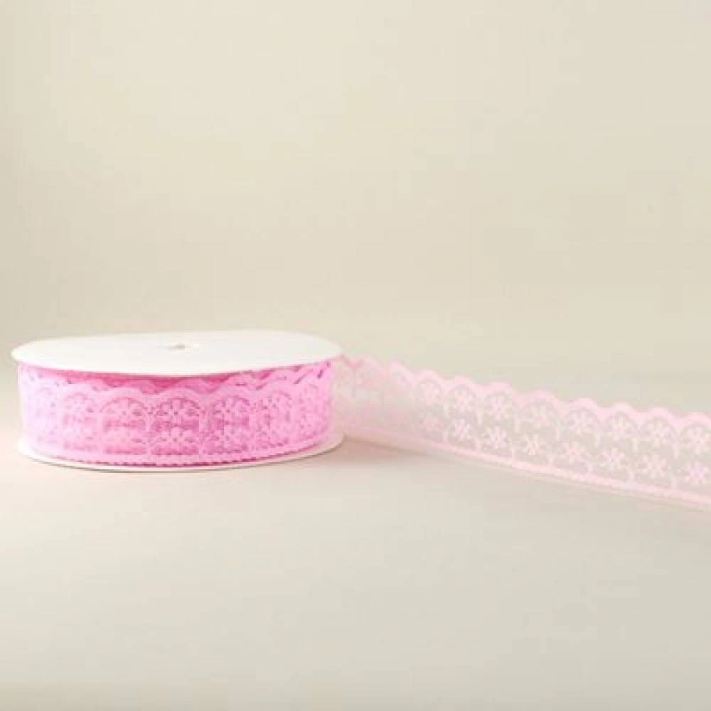 Bebek şekeri süslemelerinde, özel günlerinizde, doğum süslemelerinde veya sunumlarınızda kullanabileceğiniz pembe renkte dantel kurdela.