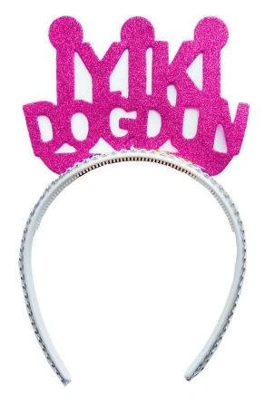 Evadan Taç Simli Kenarı Taş Süslemeli İyiki Doğdun Yazılı Fuşya