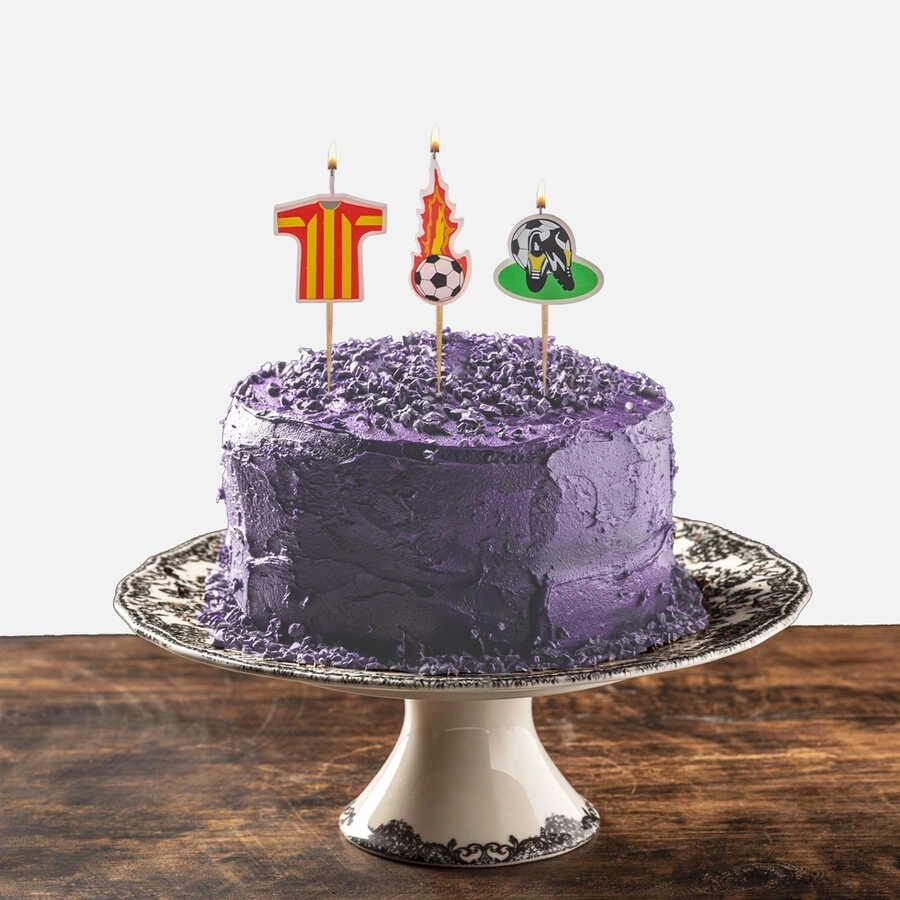 Futbol temalı kürdan mum özel tasarımı ile pasta süslemelerine hareket katabilirsiniz.
