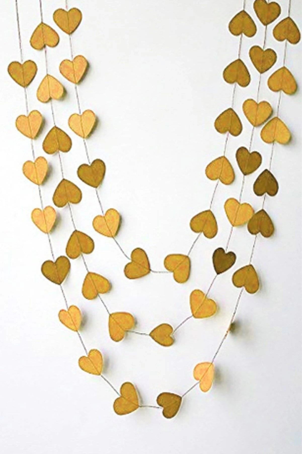 Gold Renk Kalp Kağıt Sarkıt Süs 4 Metre