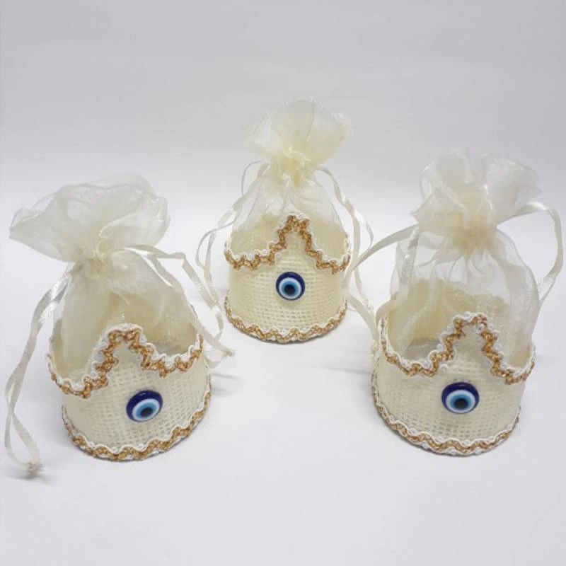 Gold Renk Nazar Boncuklu Sünnet Şapkalı Kese 12 Adet
