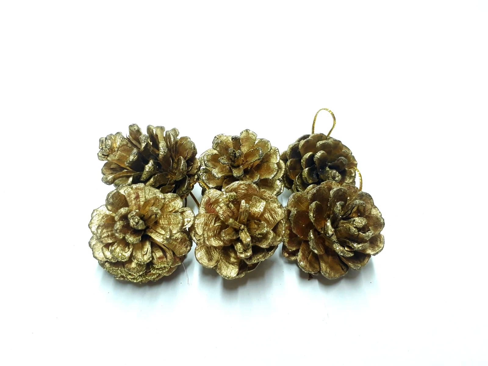 Gold Çam Kozalak Süs 4 Cm 6 lı