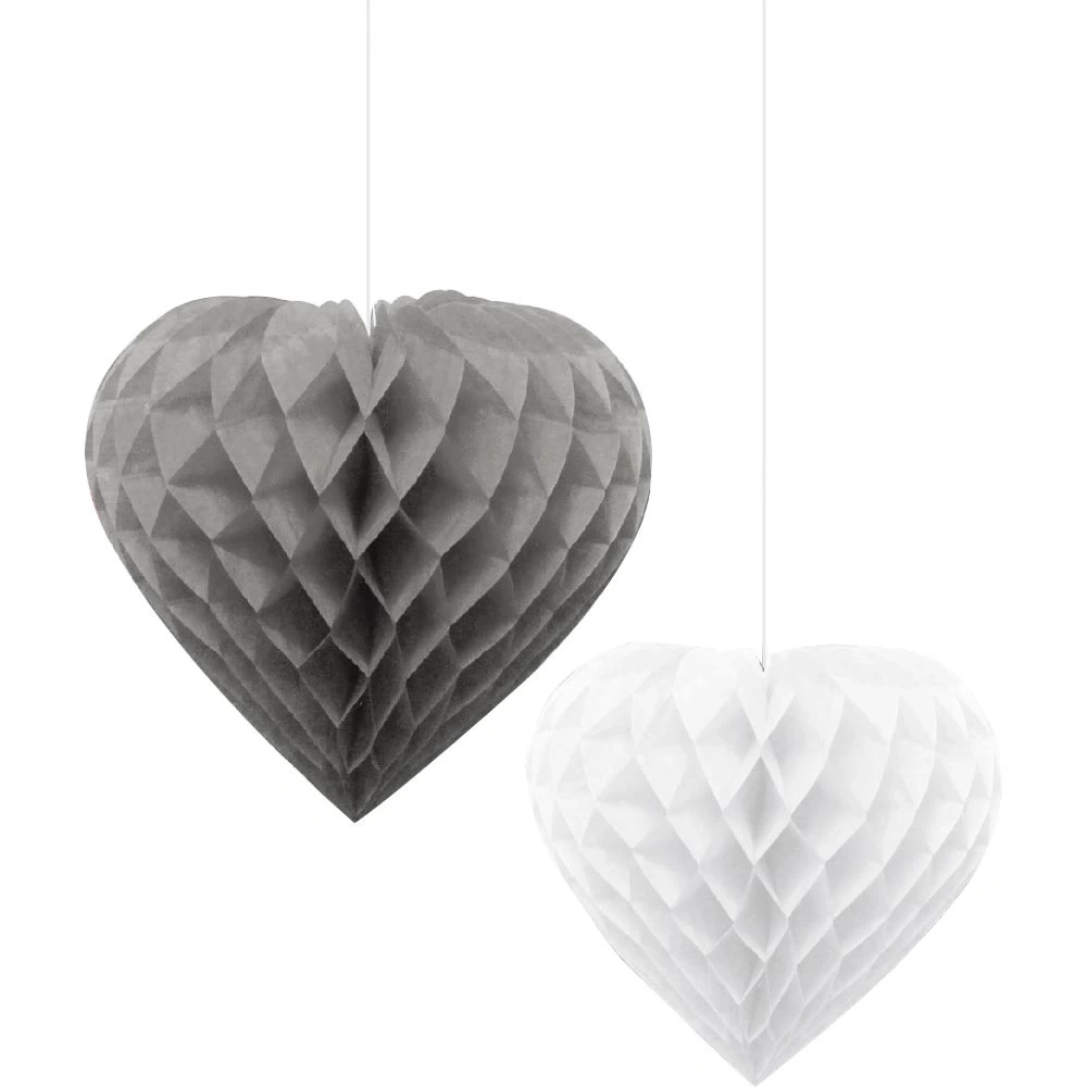 Gümüş/Beyaz ikili kalp petek süs ile sevgililer günü dekorasyonlarına farklı bir hava katabilirsiniz. Özel bir dekorasyon hazırlamak açısından tercih edeceğiniz tasarımlar ile ortamda bambaşka bir atmosfer oluşturabilirsiniz.