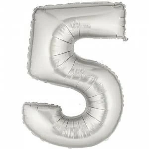 Gümüş Rakam 5 Folyo Balon 40 İnç 100 Cm