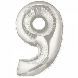 Gümüş Rakam 9 Folyo Balon 40 İnç 100 Cm