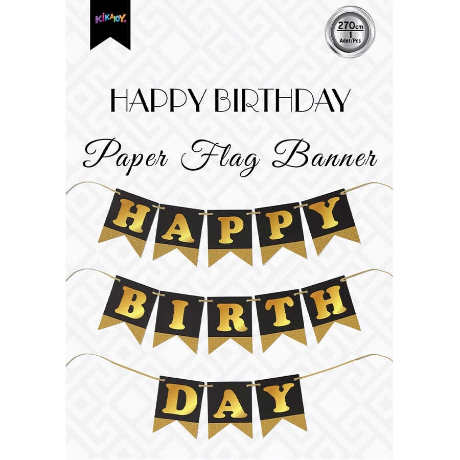 Happy Birthday siyah zemin altın harf afiş ile birlikte doğum günü partisi hazırlanan alanın süslemelerine hareket katabilirsiniz.