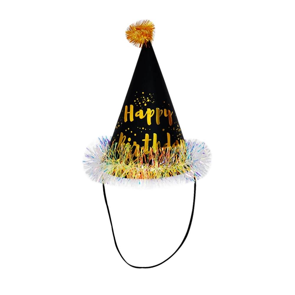 Happy Birthday varaklı şapkaözel tasarımı ile doğum günü eğlencesine hareket katabilirsiniz. Çocuklar için ve hayvan dostlarınız için de tercih edebilirsiniz.
