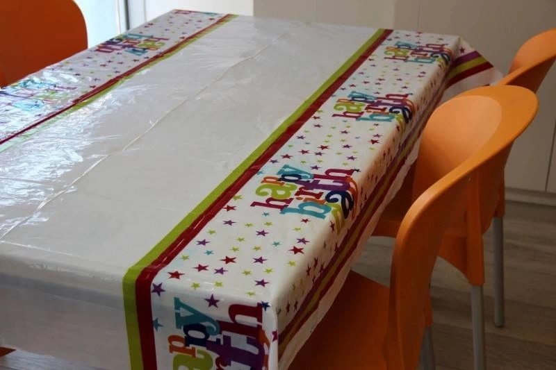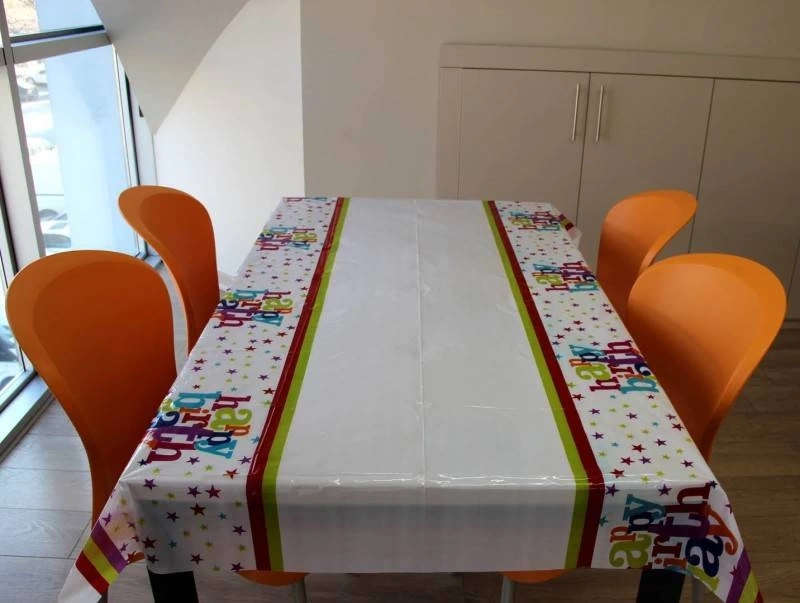 Happy Birthday Yazılı Doğum Günü Partisi Plastik Masa Örtüsünü, doğum günü temalı partilerinizi dekore ederken kullanabilirsiniz.