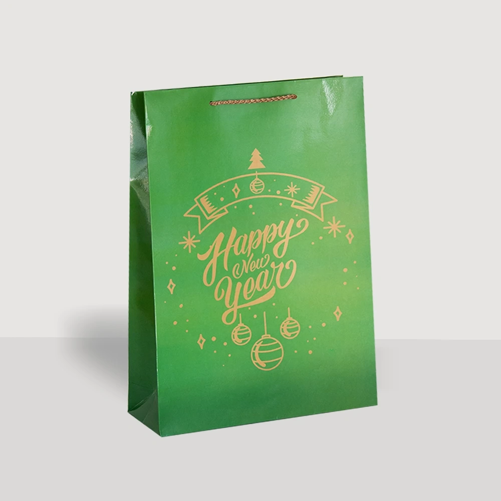 Happy New Year karton çanta ile birlikte yılbaşında aldığınız hediyeleri sevdiklerinize çok daha özel bir şekilde sunabilirsiniz. Karton malzemeden üretilen çantalar uzun ömürlü kullanım için uygun olup, kaliteden ödün verilmeden üretilmektedir.