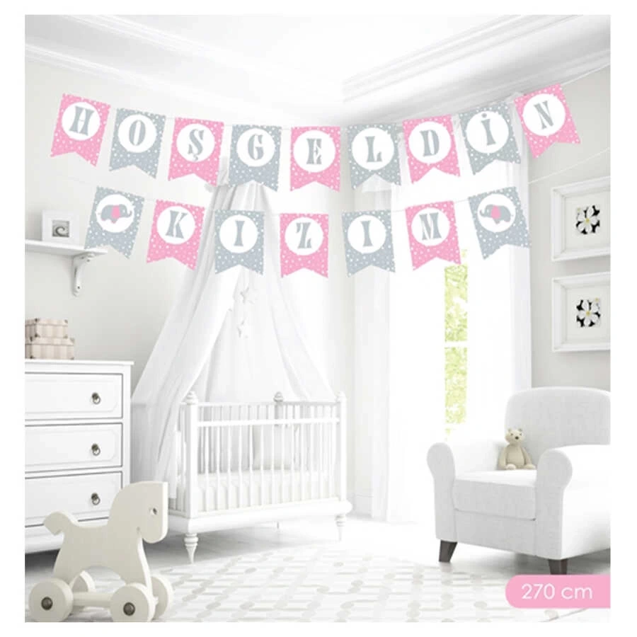 • Baby shower ve hastane odaları süslemelerinin vazgeçilmezi hoşgeldin kızım pembe harf afiş organizasyonlarınıza renk katacaktır.