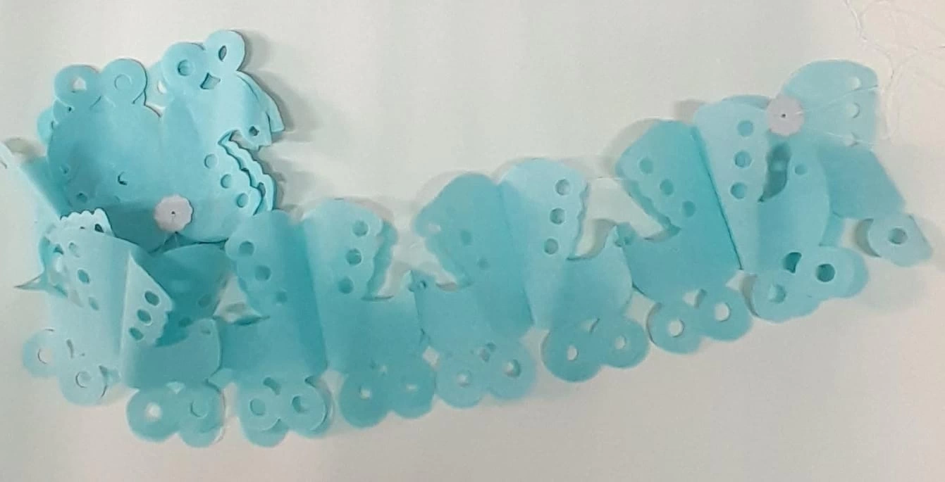 Kağıt Uzar Süs Bebek Arabası Modeli Mavi - 3,00 mt x 17 Parça
