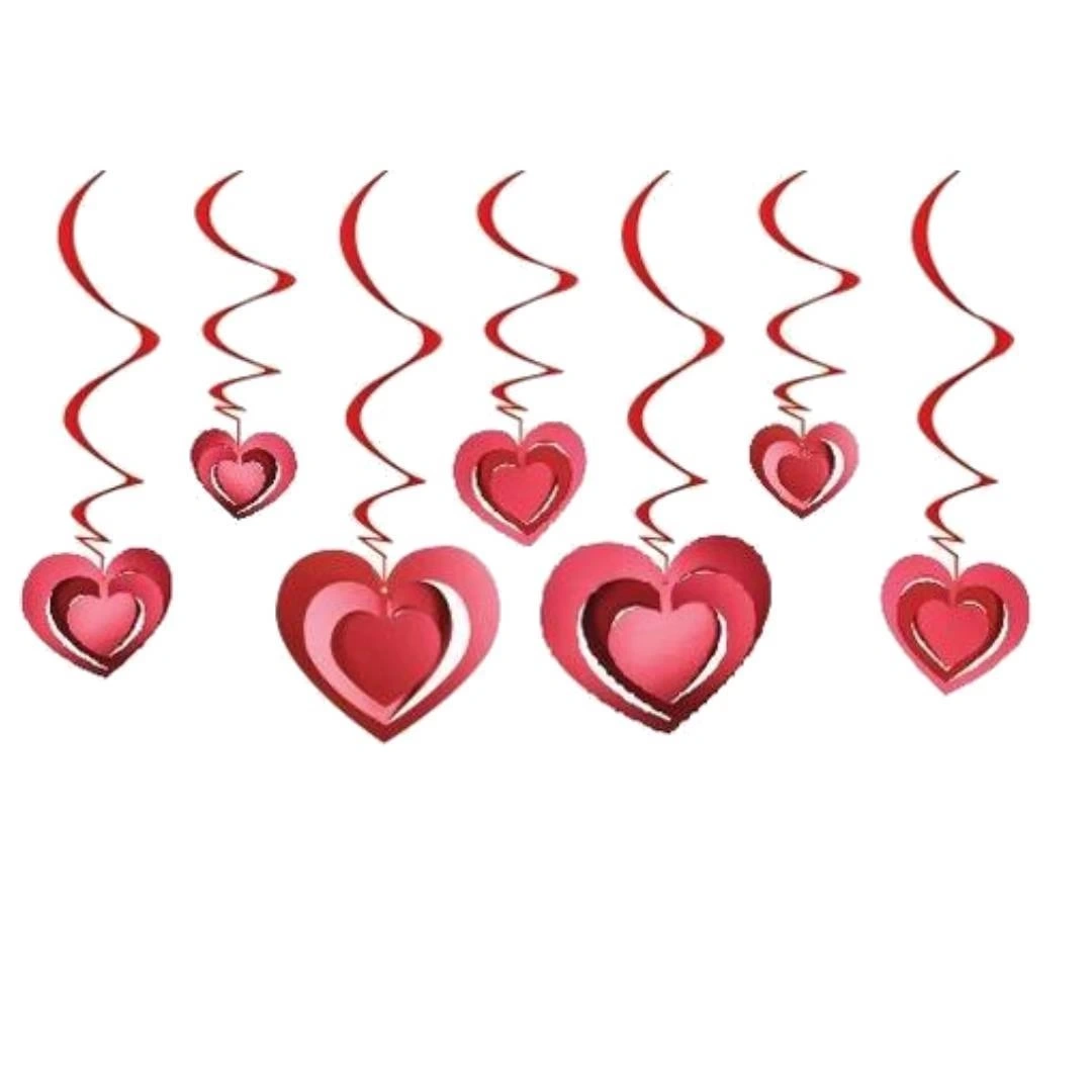 Kırmızı Kalp 3D Tavan Süs 12'li