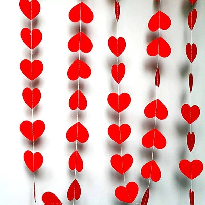 Kırmızı Renk Kalp Kağıt Sarkıt Süs 4 Metre