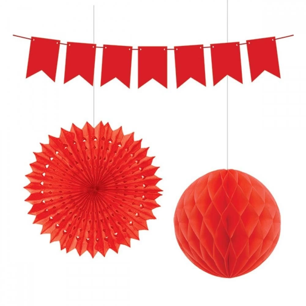 Kırmızı Renk Üçlü Dekorasyon Seti