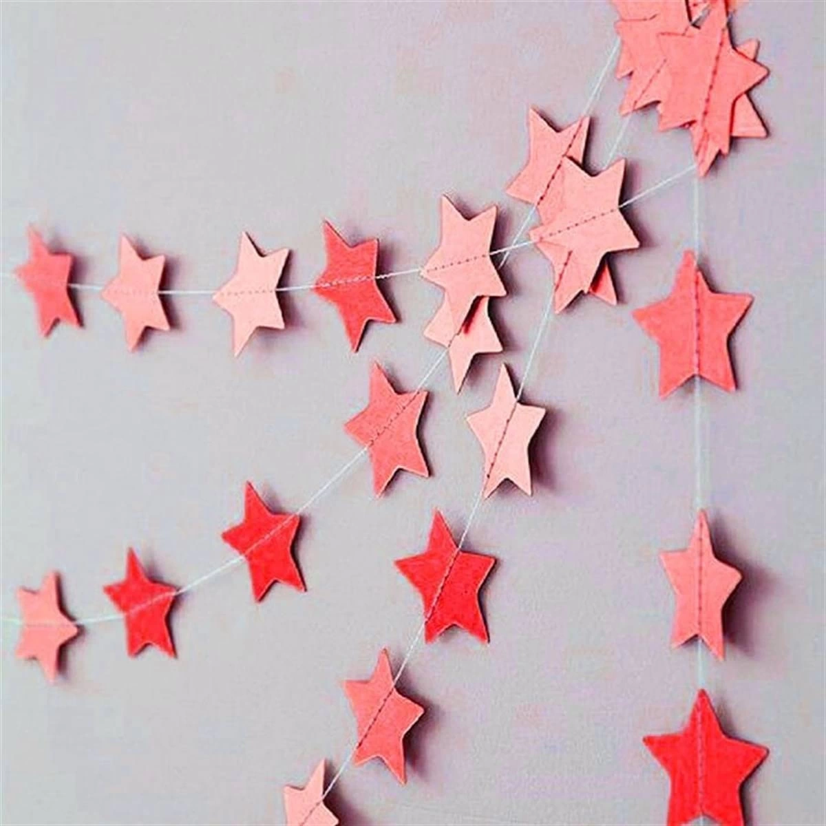 Pembe Renk Yıldız Kağıt Sarkıt Süs 4 Metre