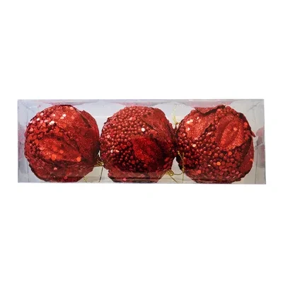 Kırmızı Yılbaşı Ağaç Süsleme Topu 8cm 3lü