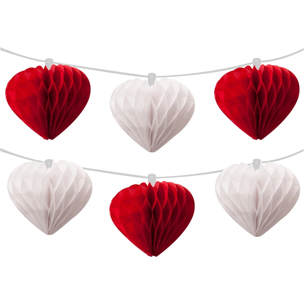 Kırmızı/Beyaz sıralı kalp petek süs ile sevgililer günü dekorasyonlarına farklı bir hava katabilirsiniz. Özel bir dekorasyon hazırlamak açısından tercih edeceğiniz tasarımlar ile ortamda bambaşka bir atmosfer oluşturabilirsiniz.