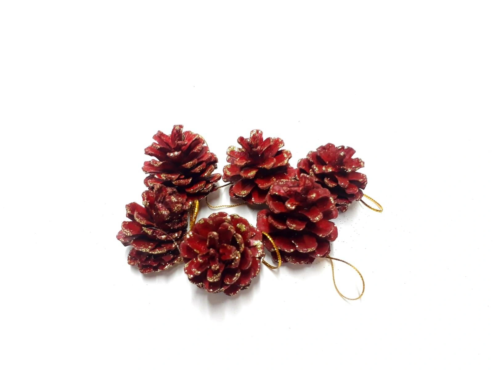 Kırmızı Çam Kozalak Süs 4 Cm 6 lı