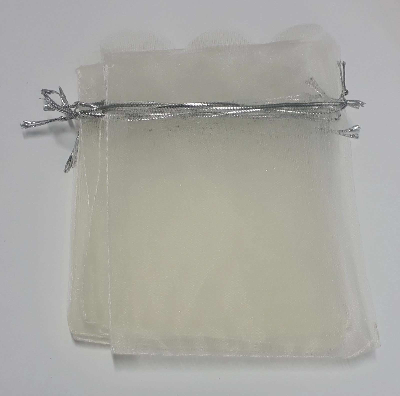 Desenli Beyaz Renk 12*14 cm Organze Tül Kese 100 Adet