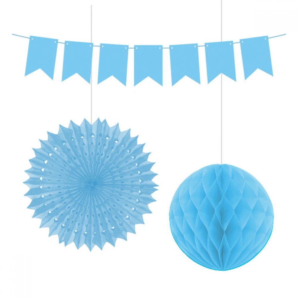 Mavi kağıt süs seti ile birlikte hem iç mekan hem de dış mekan süsleme yapabilirsiniz. Özel günlerde farklı bir dekorasyon hazırlığı için tercih edebilirsiniz.