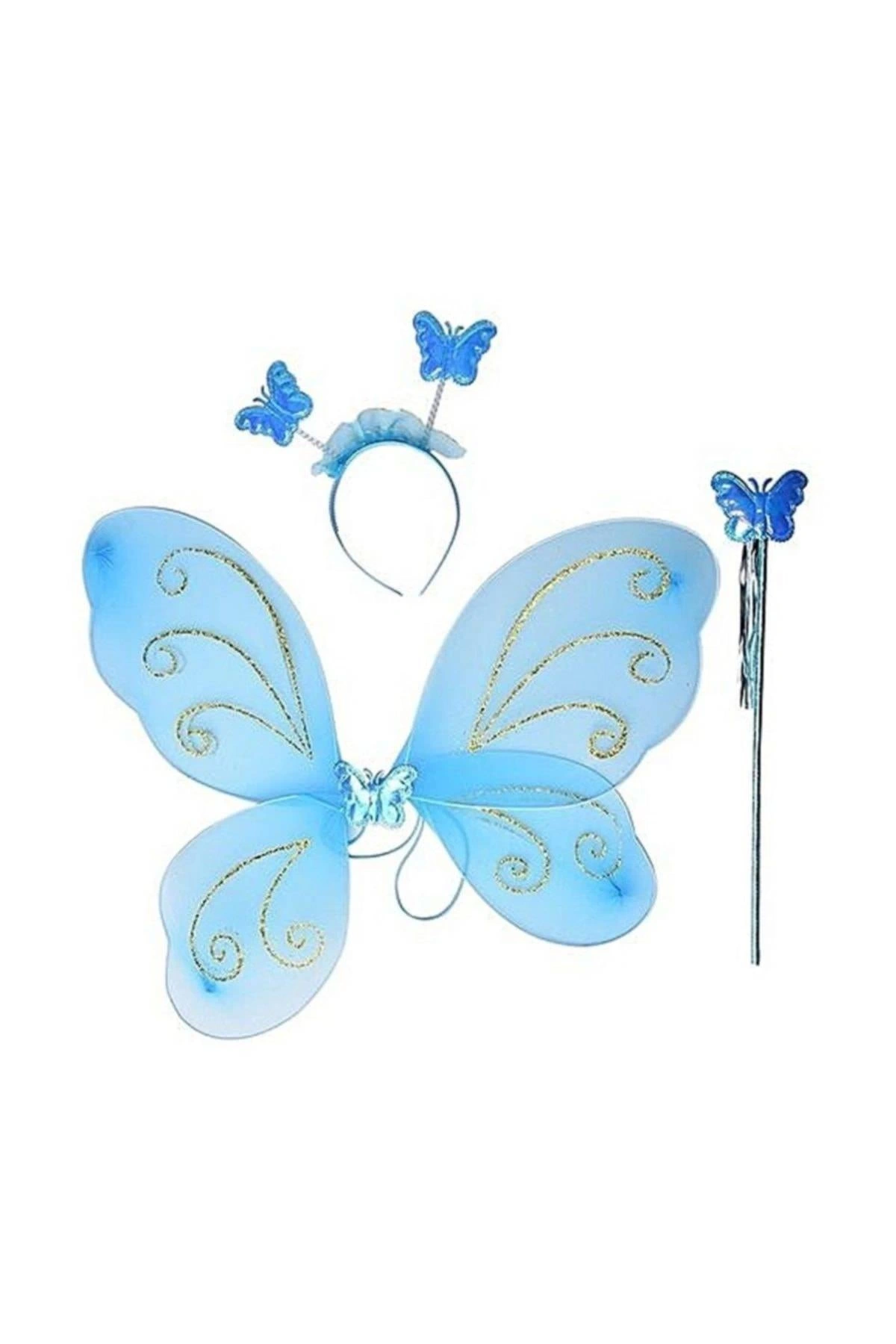Mavi Kelebek Kanadı Asa ve Taç Set