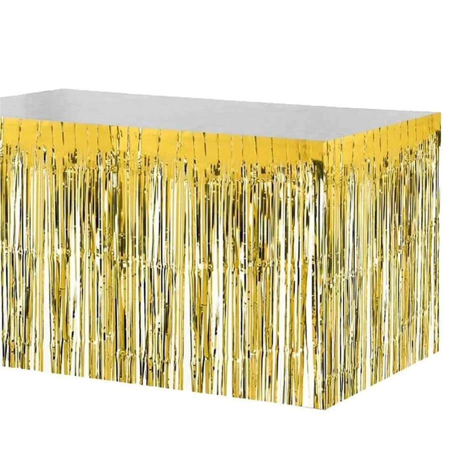 Metalize altın masa eteği özel tasarımı ile ortama bambaşka bir hareket katabilirsiniz.