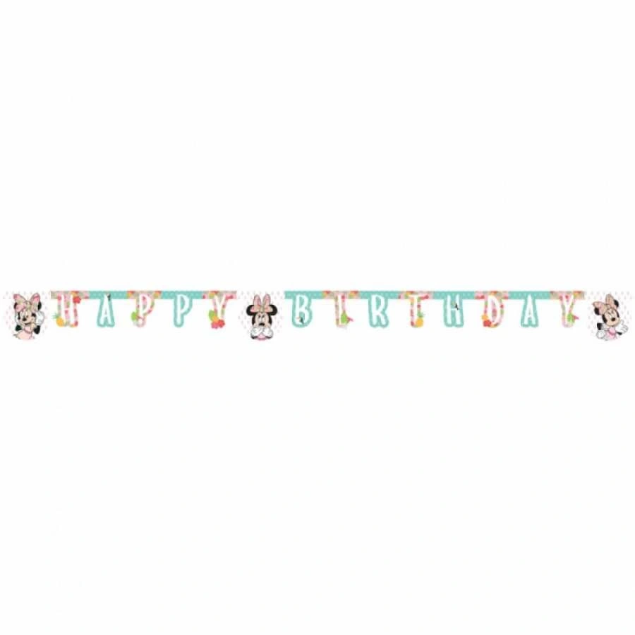 • Doğum günü, temalı partiler ve oyun davetleriniz için son derece pratik Minnie Mouse Tropical Happy Birthday Harf Afiş.