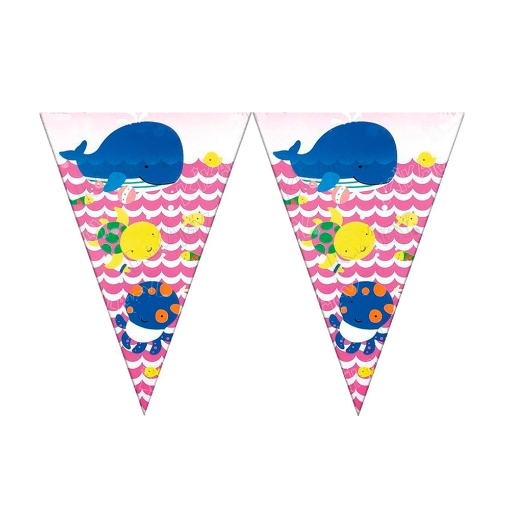 Mutlu Balıklar pembe üçgen flama ile birlikte parti hazırlanan alanın süslemelerine hareket katabilirsiniz.