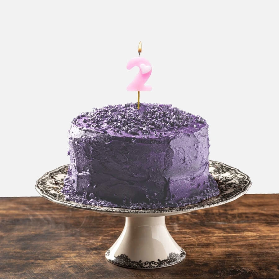 Kalpli 2 rakam kürdan mum özel tasarımı ile pasta süslemelerine hareket katabilirsiniz.