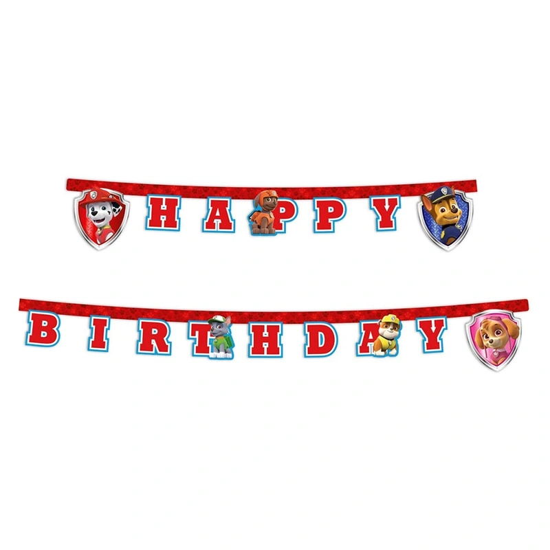Paw Patrol Happy Birthday harf afiş ile harika bir dekorasyon oluşturabilirsiniz. Firefighters, çocukların en sevdiği karakterler arasında yer alır.