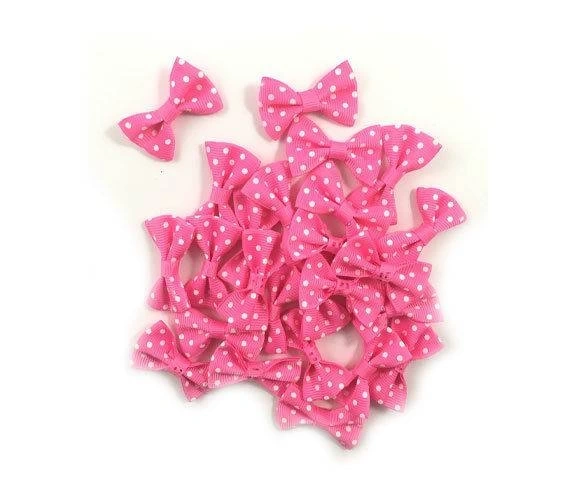 Pembe Beyaz Puantiyeli Fiyonk Süsleme Malzemesi 4cm (20 Adet)
