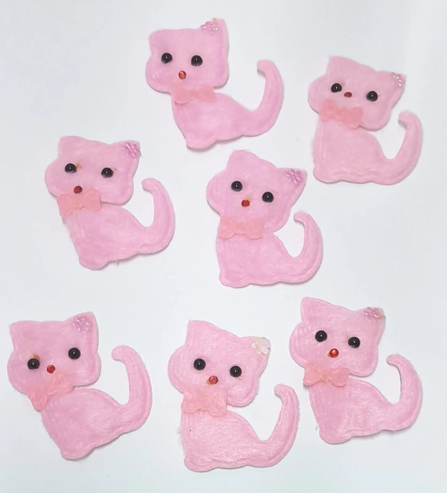 Pembe Kedi Süsleme Kumaş Sticker (25 Adet)