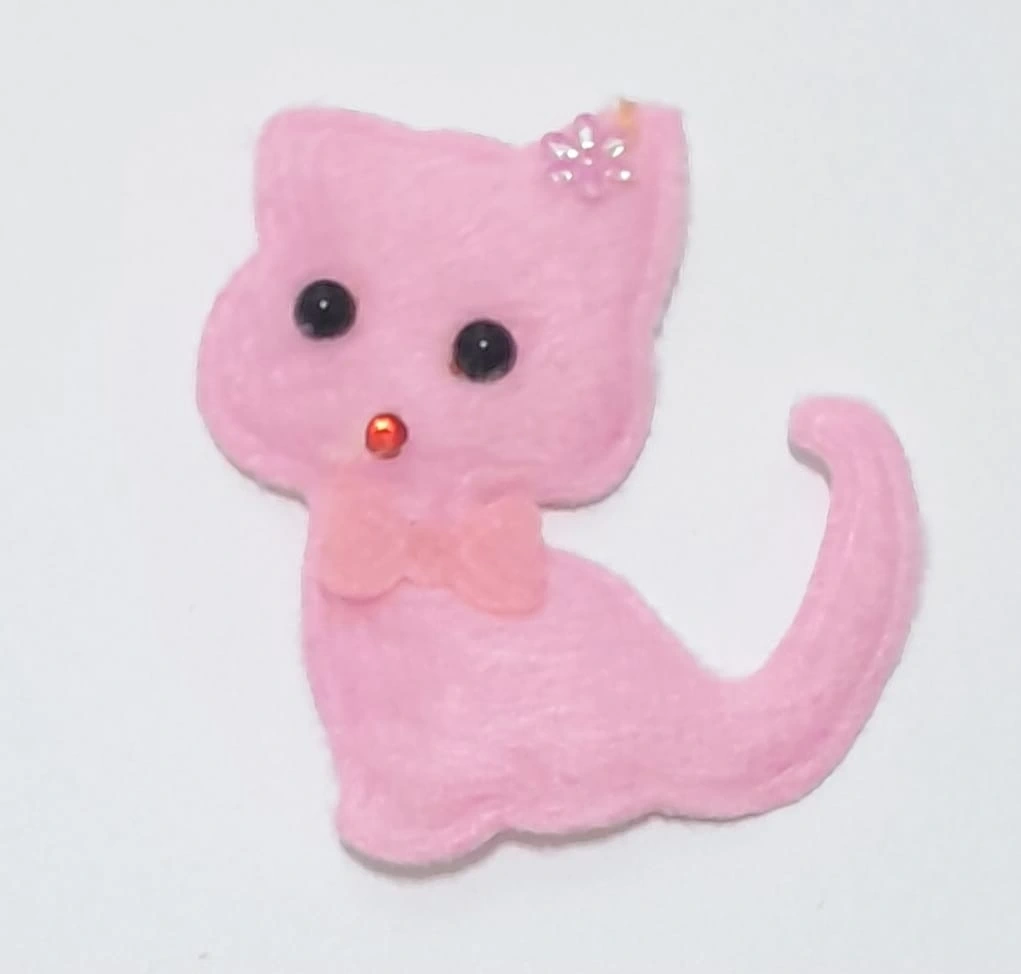 Pembe Kedi Süsleme Kumaş Sticker (100 Adet)