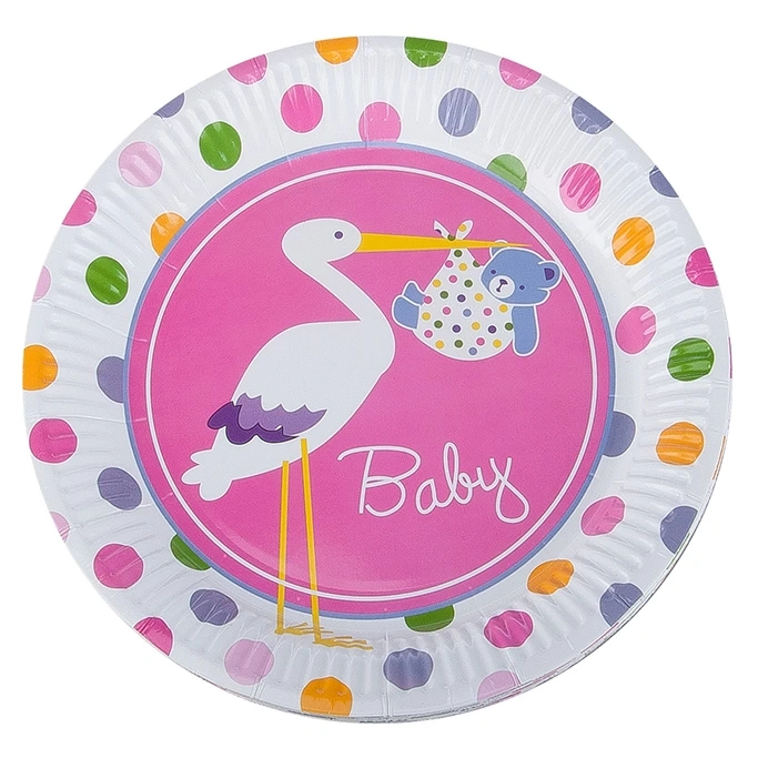Pembe Leylek Karton Tabak bebek partilerinin vazgeçilmezi Pembe Leylek Karton Tabak ile sofralarınızı tamamlayın. Bu eğlenceli karton tabaklar masanızı renklendirecek harika bir üründür. <