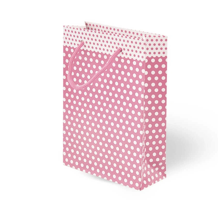 Pembe puantiyeli karton çanta ile birlikte aldığınız hediyeleri sevdiklerinize çok daha özel bir şekilde sunabilirsiniz. Karton malzemeden üretilen çantalar uzun ömürlü kullanım için uygun olup, kaliteden ödün verilmeden üretilmektedir.