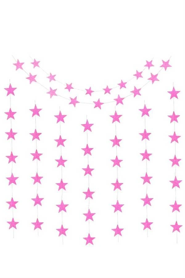 Pembe Renk Yıldız Kağıt Sarkıt Süs 4 Metre