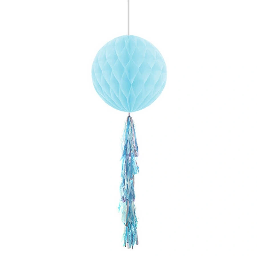 Püsküllü mavi petek kağıt süs ile birlikte doğum günü, nişan, düğün, açılışlar ve diğer tüm organizasyonlarda dekorasyon hazırlığı yapabilirsiniz.