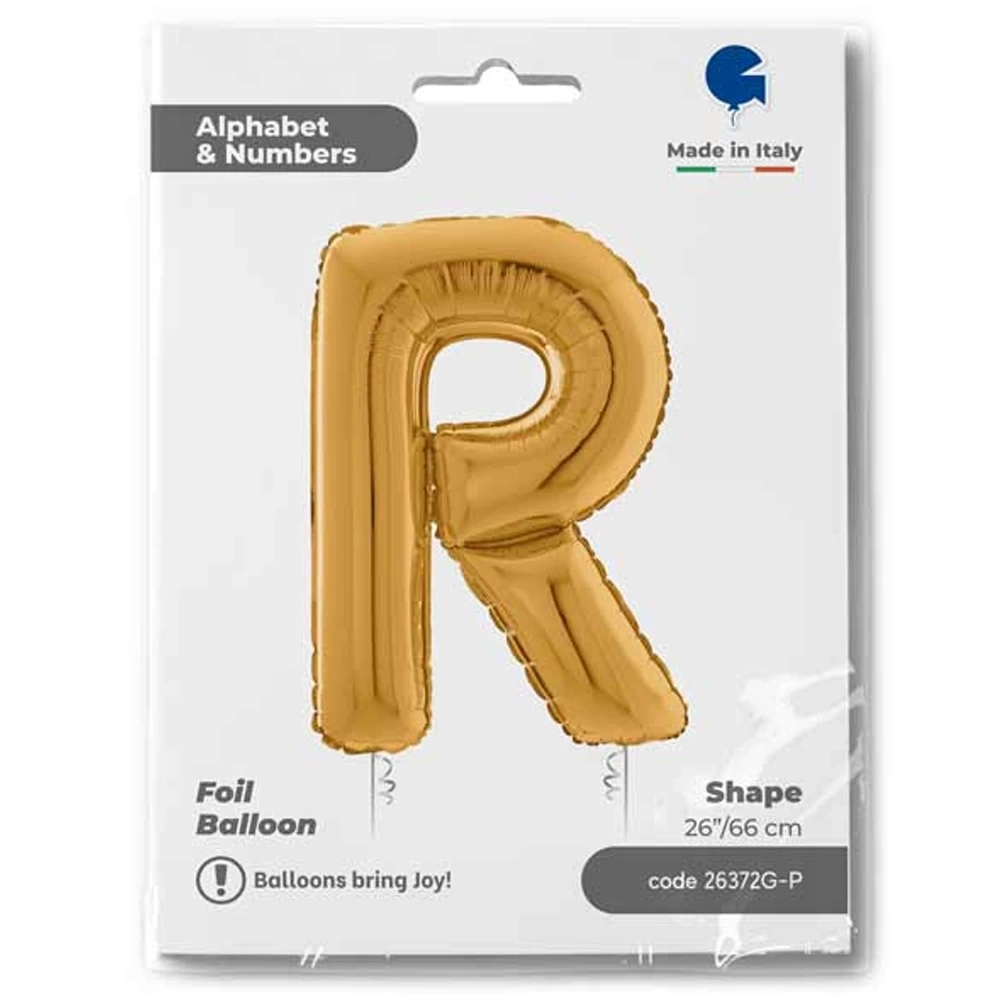 R harf Grabo altın folyo balon 26” ölçüleri ile birlikte çeşitli organizasyonlarda harika bir konsept oluşturabilirsiniz. Renk tonu özel olarak belirlenen harf Grabo folyo balon çeşitleri, şiştikleri zaman da istediğiniz harfe en iyi şekilde benzeyen balonlardır.