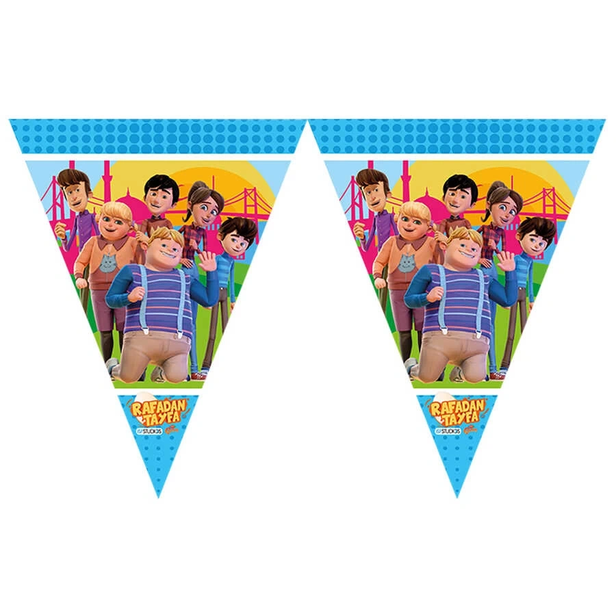 Rafadan Tayfa üçgen flama ile harika bir dekorasyon oluşturabilirsiniz. Rafadan Tayfa, çocukların en sevdiği karakterler arasında yer alır. Siz de eğlenceli bir dekorasyon oluşturmak açısından tercih edebilir ve diğer Rafadan Tayfa ürünleri ile birlikte kullanabilirsiniz.